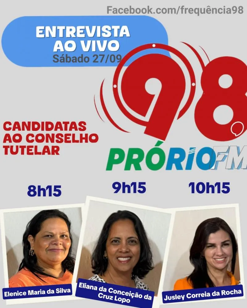 Na manhã deste sábado, 27 de setembro, o estúdio da emissora recebeu, em transmissão ao vivo, Elenice Maria da Silva, Eliana da Conceição da Cruz Lopo e Jusley Correia da Rocha postulantes às vagas que zelarão pelos direitos das crianças e adolescentes no município.